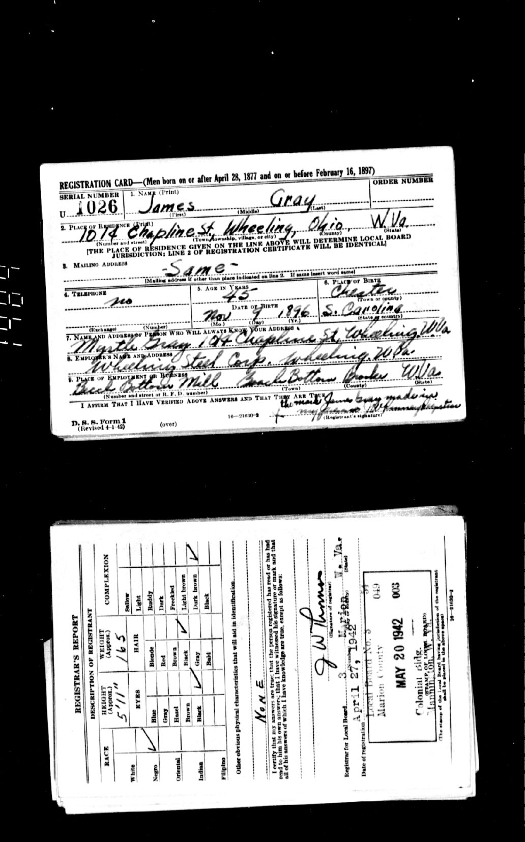 Click pictures to enlarge. Note: 2nd page of Adam's and William Henry's registration cards belong to someone else.