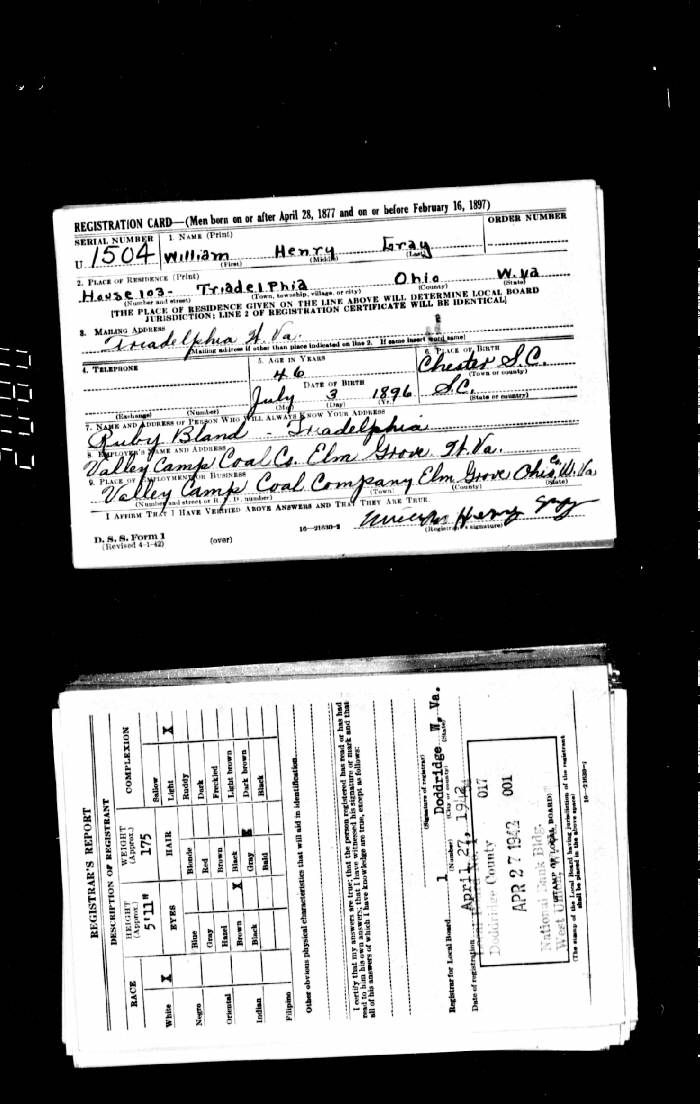 Note: 2nd page of Adam's and William Henry's registration cards belong to someone else.